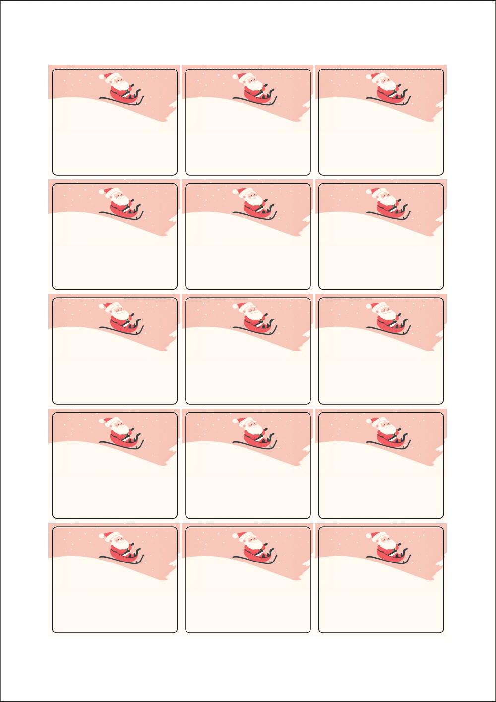 디자인된 A4 라벨지 출력용 라벨스티커, 규격코드: 953, 디자인코드: DA1482(산타 신난다), 53 x 45 (mm)