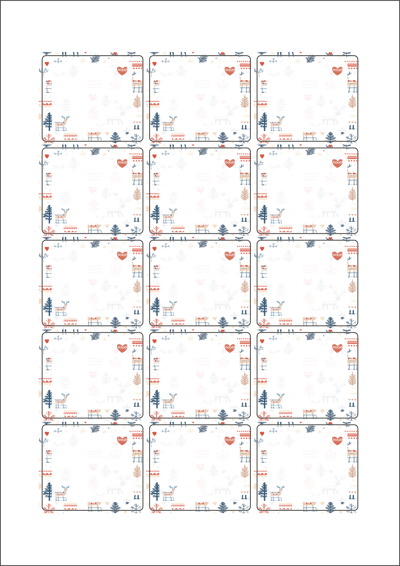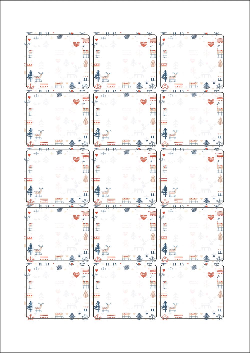 디자인된 A4 라벨지 출력용 라벨스티커, 규격코드: 953, 디자인코드: DA1526(겨울숲 여행 함께해요), 53 x 45 (mm)