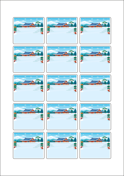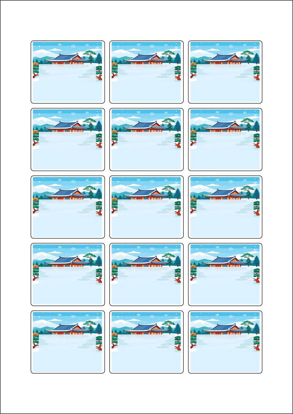 디자인된 A4 라벨지 출력용 라벨스티커, 규격코드: 953, 디자인코드: DA1567(설날의 아침1), 53 x 45 (mm)