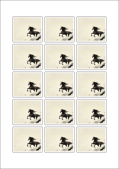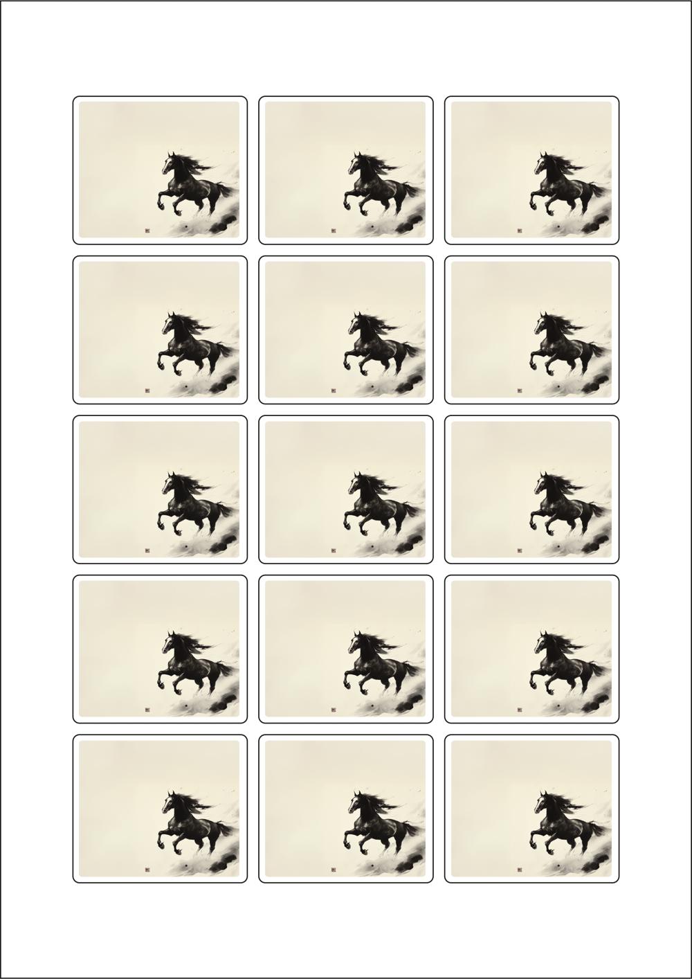 디자인된 A4 라벨지 출력용 라벨스티커, 규격코드: 953, 디자인코드: DA1570(함께 달리는 희망찬 새해), 53 x 45 (mm)