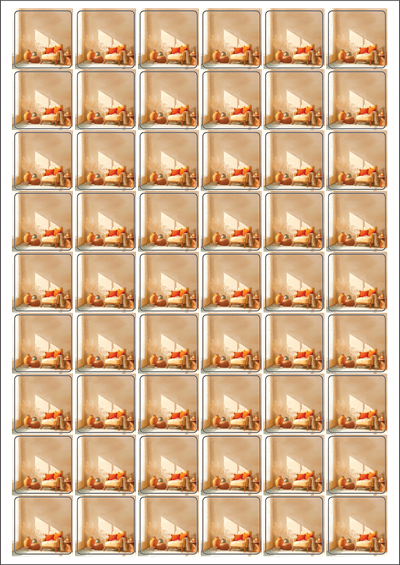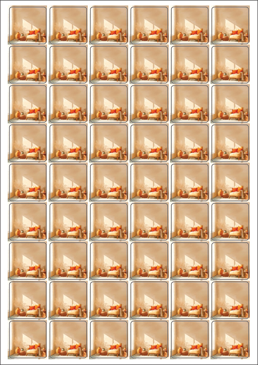 디자인된 A4 라벨지 출력용 라벨스티커, 규격코드: 954, 디자인코드: DA1436(아늑한 어느날 오후의 풍경), 30 x 30 (mm)