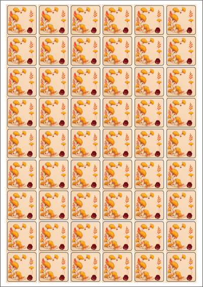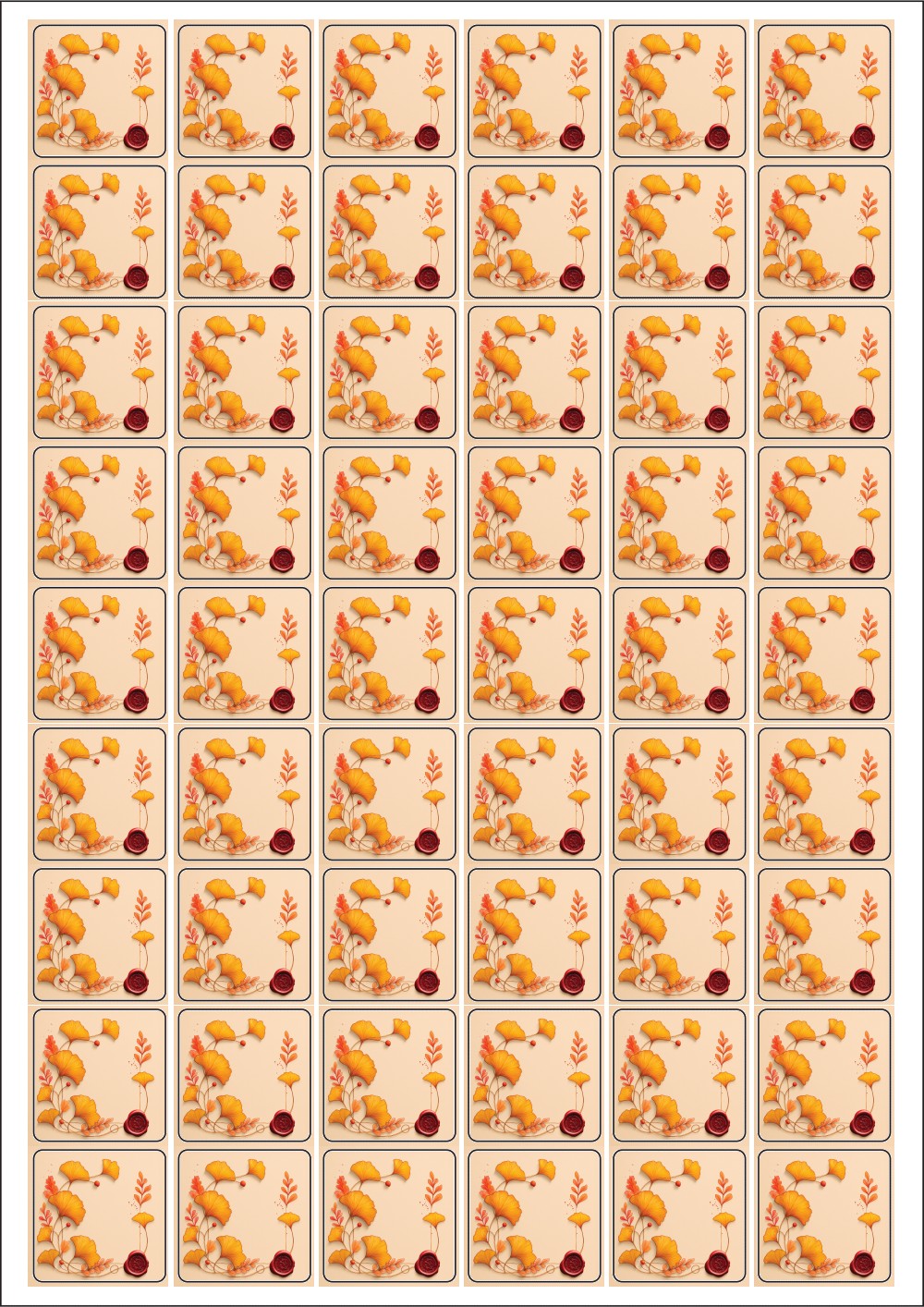 디자인된 A4 라벨지 출력용 라벨스티커, 규격코드: 954, 디자인코드: DA1437(은행잎 메모), 30 x 30 (mm)