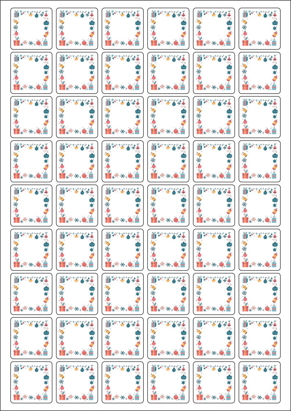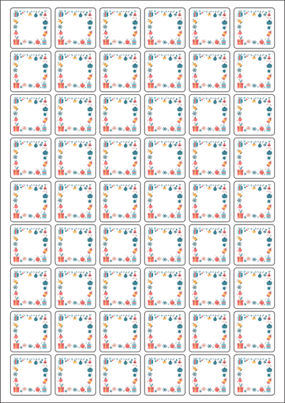 디자인된 A4 라벨지 출력용 라벨스티커, 규격코드: 954, 디자인코드: DA1458(크리스마스를 장식해요), 30 x 30 (mm)