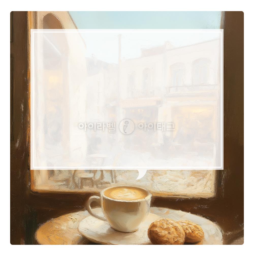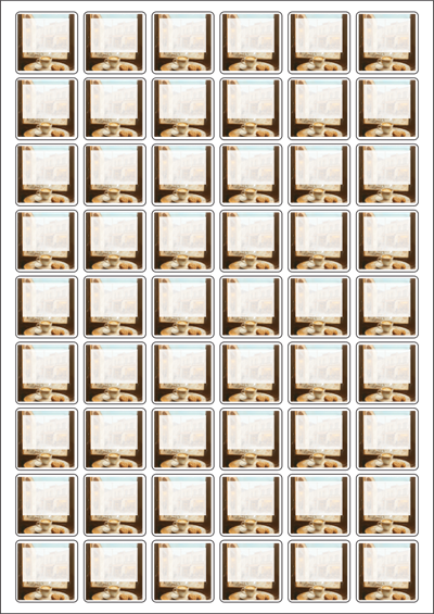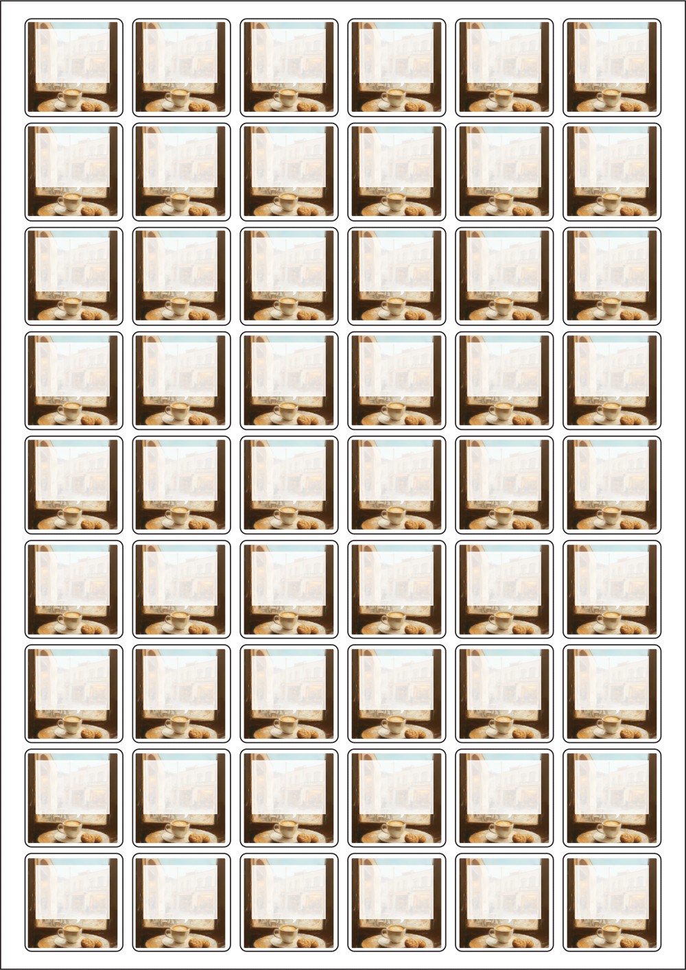 디자인된 A4 라벨지 출력용 라벨스티커, 규격코드: 954, 디자인코드: DA1479(레트로 감성 카페에서), 30 x 30 (mm)