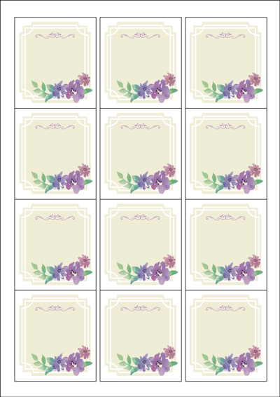 디자인된 A4 라벨지 출력용 라벨스티커, 규격코드: 961, 디자인코드: DA1035(꽃장식 메모지), 61 x 68 (mm)