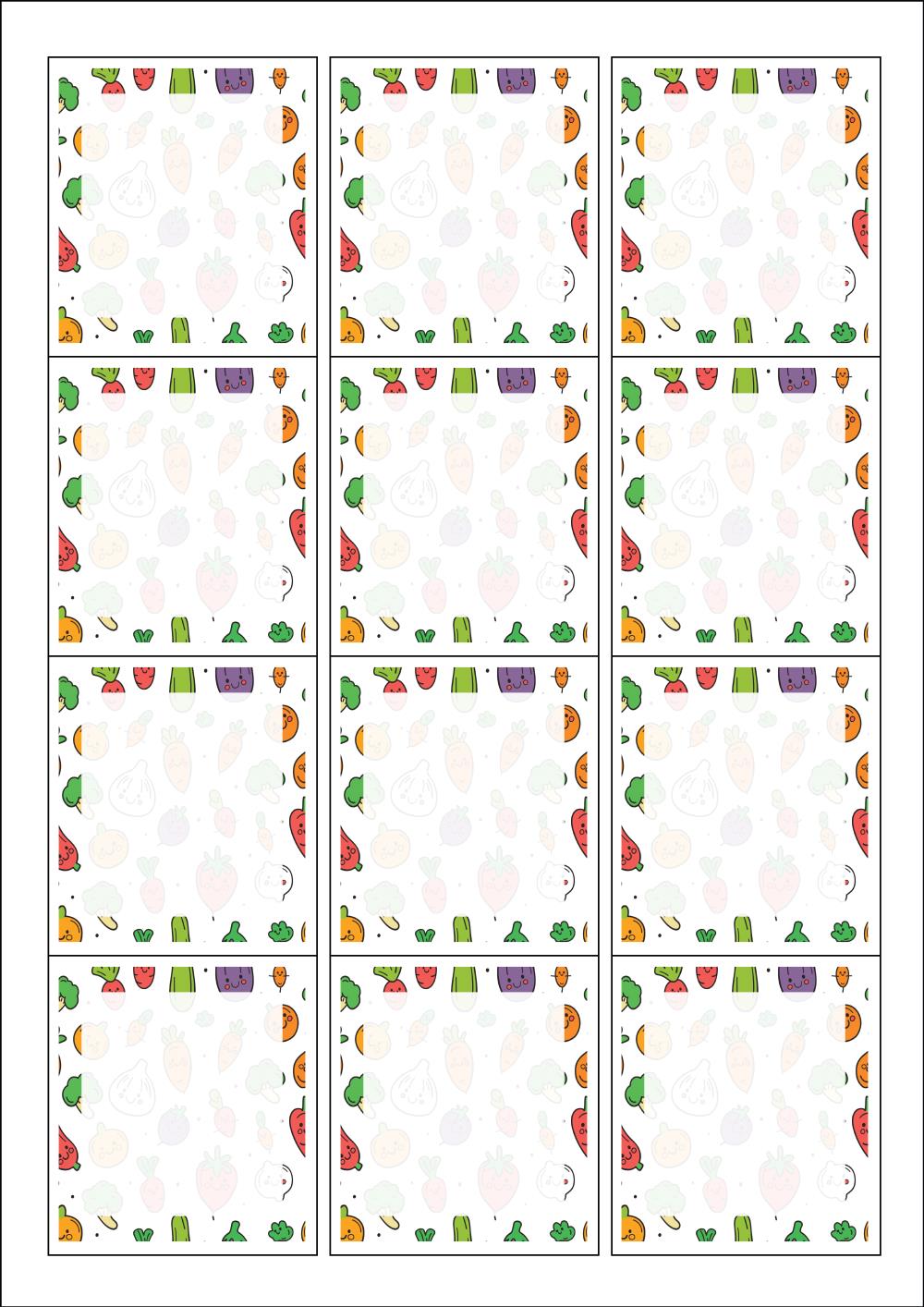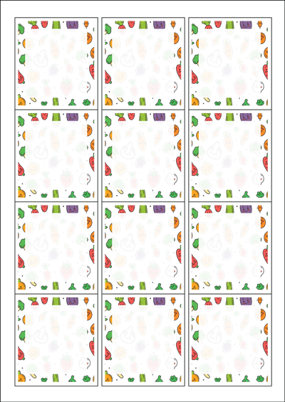 디자인된 A4 라벨지 출력용 라벨스티커, 규격코드: 961, 디자인코드: DA1376(건강한 야채 이야기), 61 x 68 (mm)