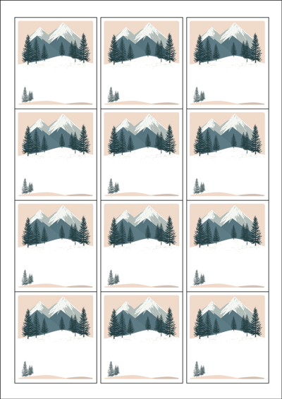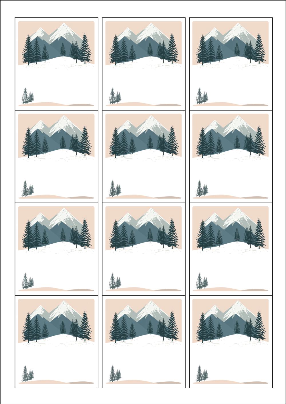 디자인된 A4 라벨지 출력용 라벨스티커, 규격코드: 961, 디자인코드: DA1582(저 잘지내요~ 겨울산에 인사), 61 x 68 (mm)