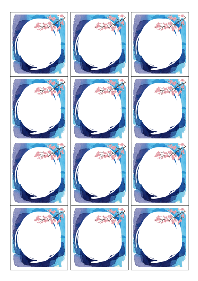 디자인된 A4 라벨지 출력용 라벨스티커, 규격코드: 961, 디자인코드: DA950(벚꽃만개한 정원에서), 61 x 68 (mm)