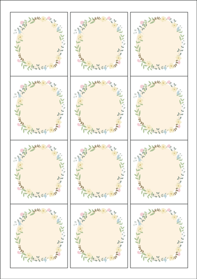 디자인된 A4 라벨지 출력용 라벨스티커, 규격코드: 961, 디자인코드: DA992(머리에 꽃을), 61 x 68 (mm)