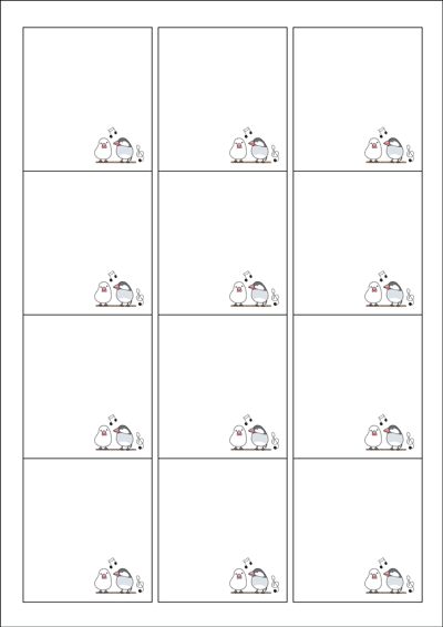 디자인된 A4 라벨지 출력용 라벨스티커, 규격코드: 961, 디자인코드: DV158(노래하는 새들), 61 x 68 (mm)