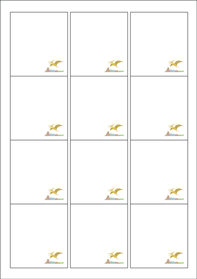 디자인된 A4 라벨지 출력용 라벨스티커, 규격코드: 961, 디자인코드: DV164(쥬라기월드로 타임슬립), 61 x 68 (mm)