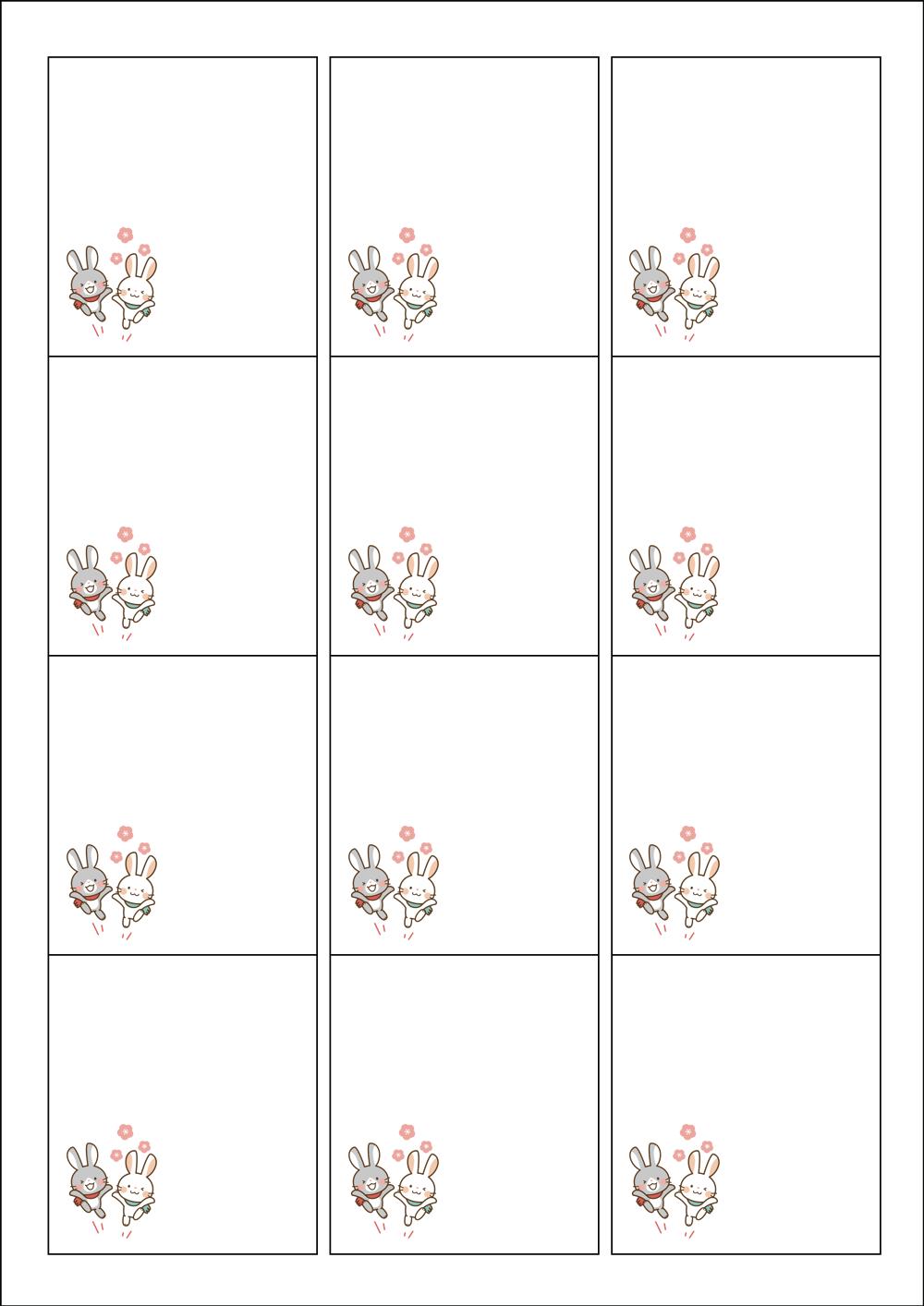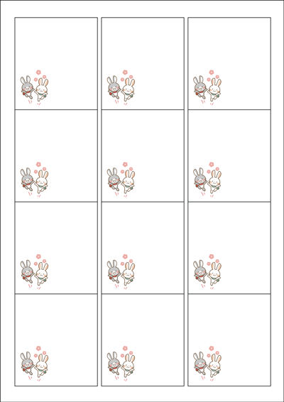 디자인된 A4 라벨지 출력용 라벨스티커, 규격코드: 961, 디자인코드: DX005(귀여운 토끼들과 함께가요!!), 61 x 68 (mm)
