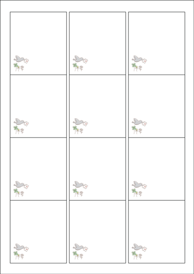 디자인된 A4 라벨지 출력용 라벨스티커, 규격코드: 961, 디자인코드: DX147(비둘기 우편), 61 x 68 (mm)