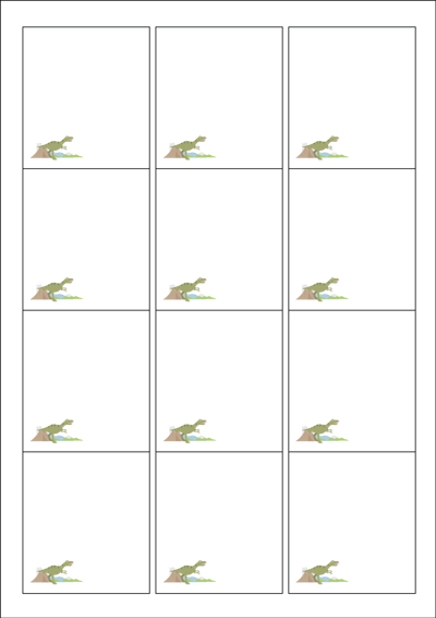 디자인된 A4 라벨지 출력용 라벨스티커, 규격코드: 961, 디자인코드: DX162(쥬라기월드), 61 x 68 (mm)