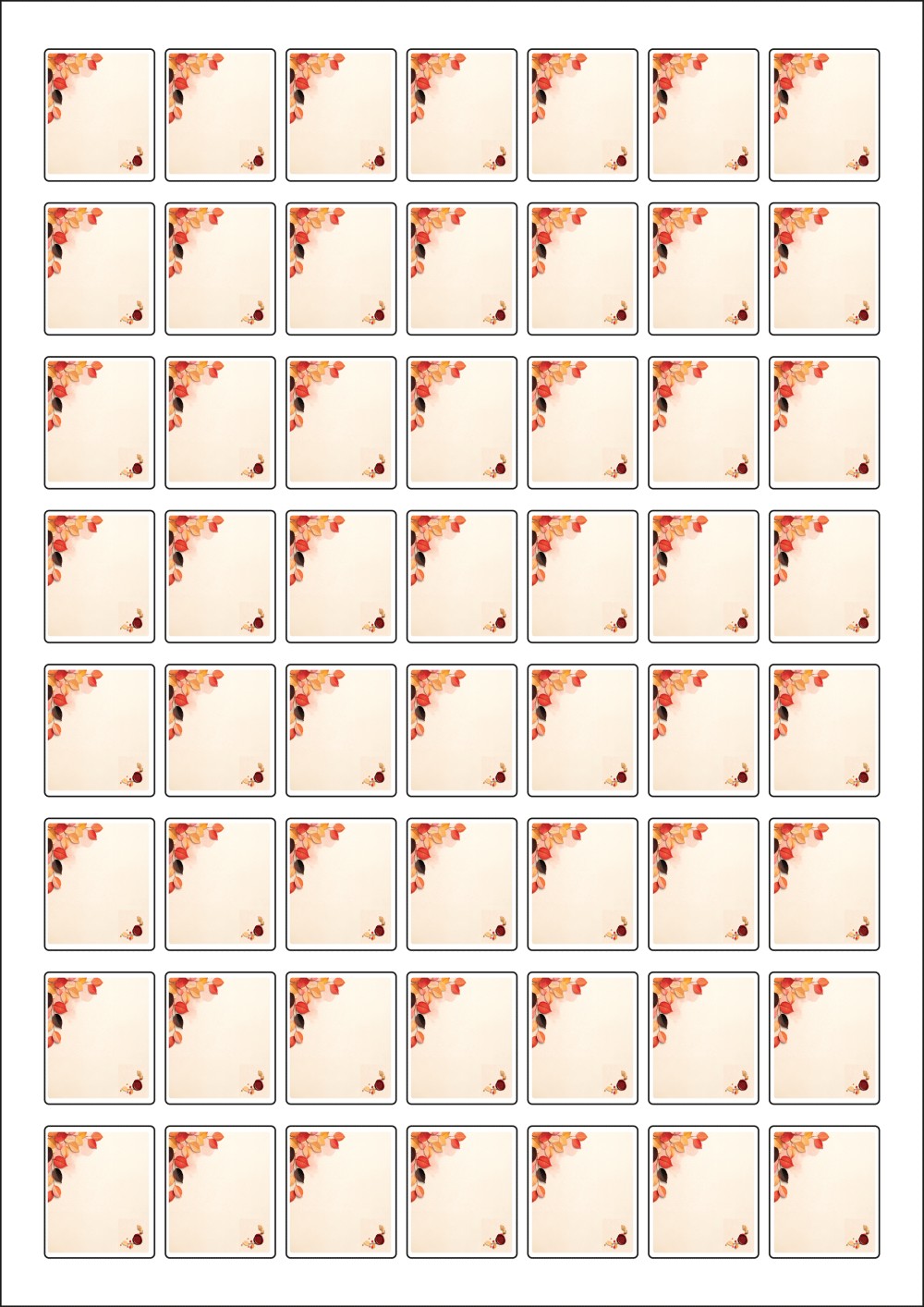 디자인된 A4 라벨지 출력용 라벨스티커, 규격코드: 978, 디자인코드: DA1428(가을날의 메세지1), 25 x 30 (mm)