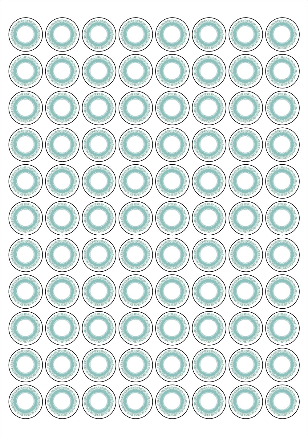디자인된 A4 라벨지 출력용 라벨스티커, 규격코드: 988, 디자인코드: DA1419(민트레이스), Φ23 (mm) 원형