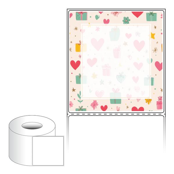 출력용 롤타입 스티커 디자인 라벨지, 규격코드: RL100107, 디자인코드: DA1393(선물 하트 포장지), 100 x 107.067 (mm) , 지관: 75mm