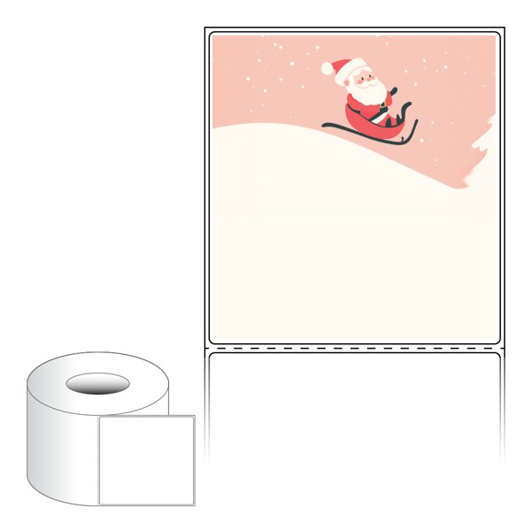 출력용 롤타입 스티커 디자인 라벨지, 규격코드: RL100107, 디자인코드: DA1482(산타 신난다), 100 x 107.067 (mm) , 지관: 75mm