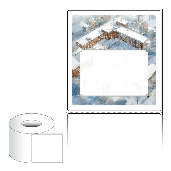 출력용 롤타입 스티커 디자인 라벨지, 규격코드: RL100107, 디자인코드: DA1535(겨울방학 학교에서 러브레터), 100 x 107.067 (mm) , 지관: 75mm