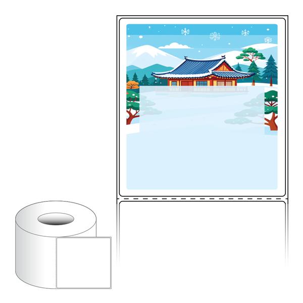 출력용 롤타입 스티커 디자인 라벨지, 규격코드: RL100107, 디자인코드: DA1567(설날의 아침1), 100 x 107.067 (mm) , 지관: 75mm