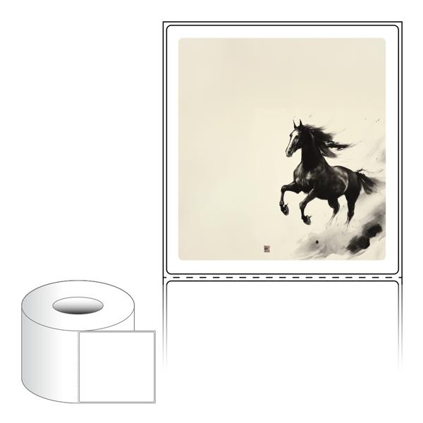 출력용 롤타입 스티커 디자인 라벨지, 규격코드: RL100107, 디자인코드: DA1570(함께 달리는 희망찬 새해), 100 x 107.067 (mm) , 지관: 75mm