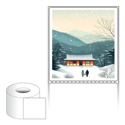 출력용 롤타입 스티커 디자인 라벨지, 규격코드: RL100107, 디자인코드: DA1577(귀향, 눈내리는 설날), 100 x 107.067 (mm) , 지관: 75mm