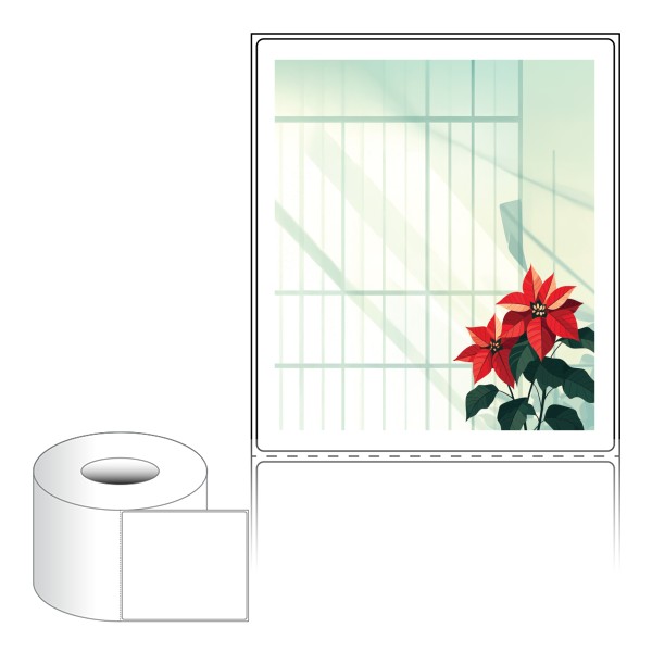 출력용 롤타입 스티커 디자인 라벨지, 규격코드: RL100116, 디자인코드: DA1477(포인세치아와 함께한 겨울), 100 x 115.533 (mm) , 지관: 75mm