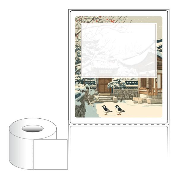 출력용 롤타입 스티커 디자인 라벨지, 규격코드: RL100116, 디자인코드: DA1546(눈내린 설날 아침), 100 x 115.533 (mm) , 지관: 75mm