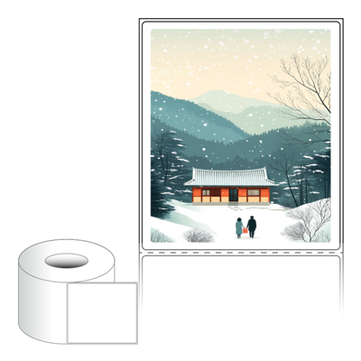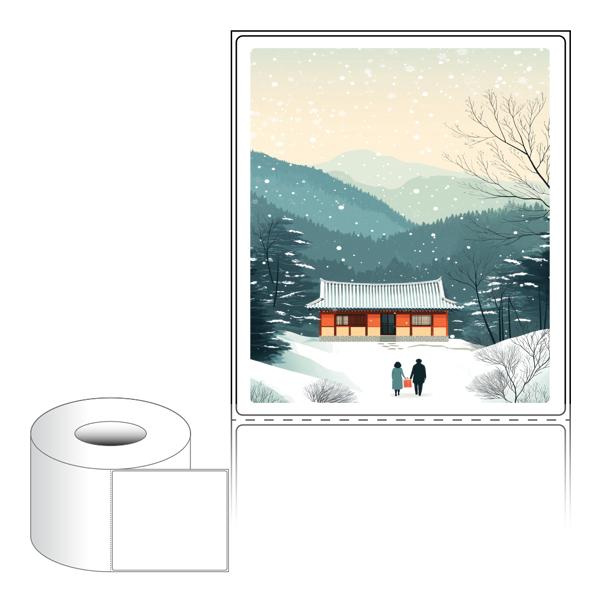 출력용 롤타입 스티커 디자인 라벨지, 규격코드: RL100116, 디자인코드: DA1577(귀향, 눈내리는 설날), 100 x 115.533 (mm) , 지관: 75mm