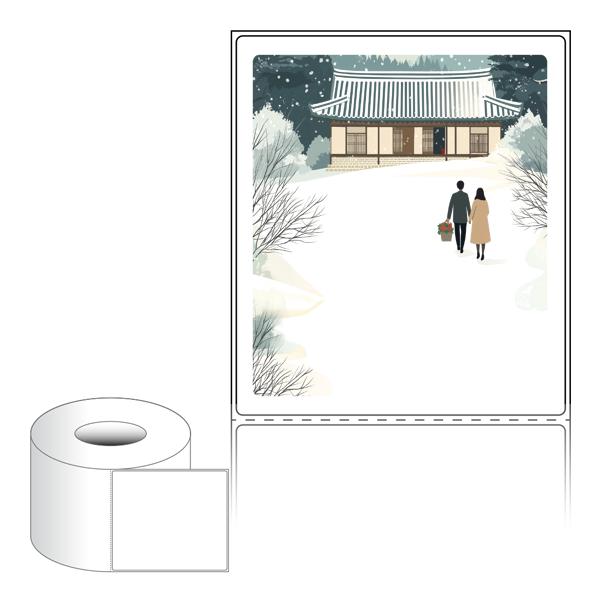 출력용 롤타입 스티커 디자인 라벨지, 규격코드: RL100116, 디자인코드: DA1580(눈내린 귀향의 따뜻한 길), 100 x 115.533 (mm) , 지관: 75mm