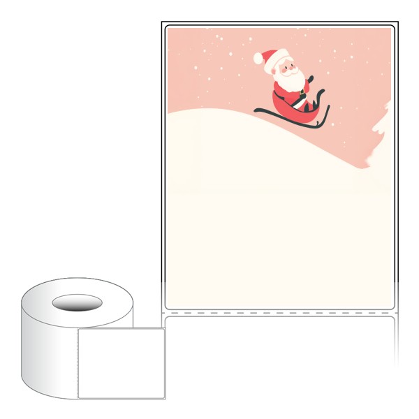 출력용 롤타입 스티커 디자인 라벨지, 규격코드: RL100124, 디자인코드: DA1482(산타 신난다), 100 x 124 (mm) , 지관: 75mm