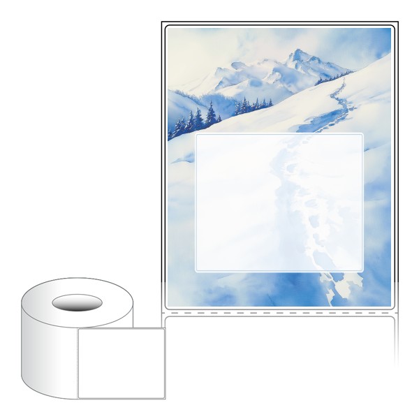 출력용 롤타입 스티커 디자인 라벨지, 규격코드: RL100124, 디자인코드: DA1490(겨울산에서 보내는 편지 1), 100 x 124 (mm) , 지관: 75mm