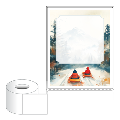 출력용 롤타입 스티커 디자인 라벨지, 규격코드: RL100124, 디자인코드: DA1495(겨울날의 동화, 그리고 즐거운 추억), 100 x 124 (mm) , 지관: 75mm