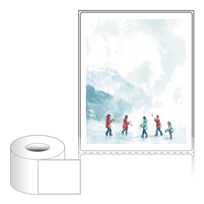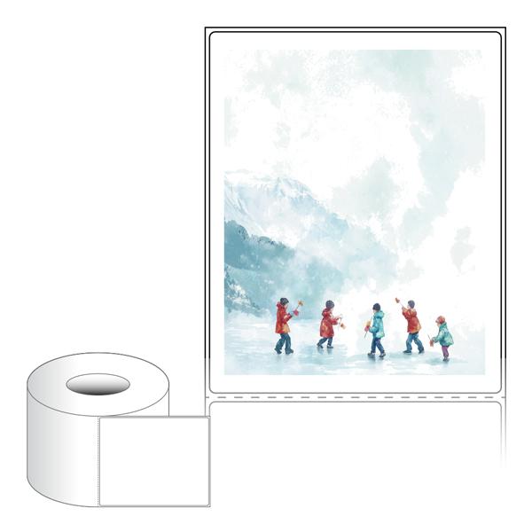 출력용 롤타입 스티커 디자인 라벨지, 규격코드: RL100124, 디자인코드: DA1522(추워도 즐거운 아이들의 겨울), 100 x 124 (mm) , 지관: 75mm
