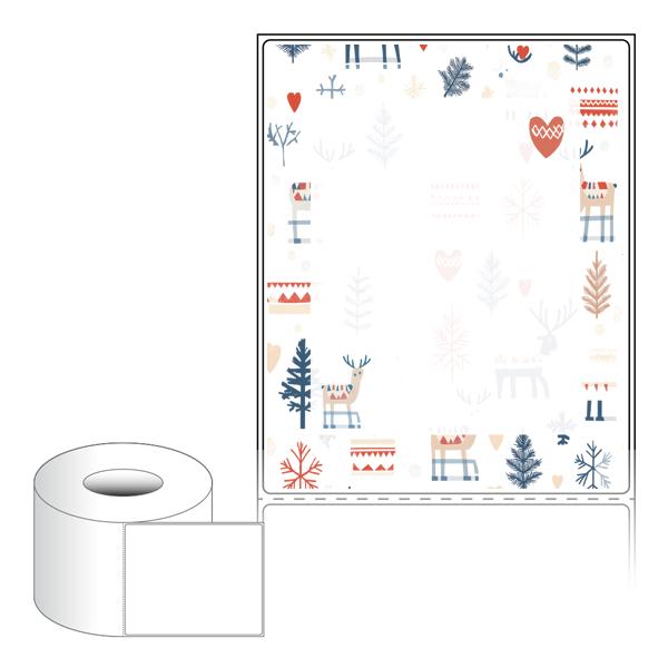 출력용 롤타입 스티커 디자인 라벨지, 규격코드: RL100124, 디자인코드: DA1526(겨울숲 여행 함께해요), 100 x 124 (mm) , 지관: 75mm