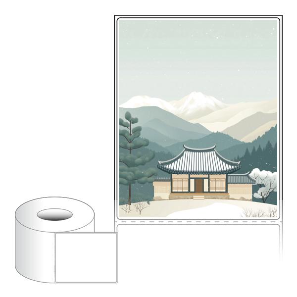 출력용 롤타입 스티커 디자인 라벨지, 규격코드: RL100124, 디자인코드: DA1578(고요한 설날의 아침), 100 x 124 (mm) , 지관: 75mm