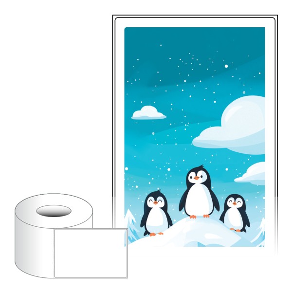 출력용 롤타입 스티커 디자인 라벨지, 규격코드: RL100149, 디자인코드: DA1468(반가워요. 귀여운 펭귄 친구들~), 100 x 149.4 (mm) , 지관: 75mm