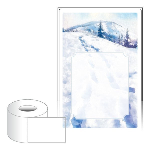 출력용 롤타입 스티커 디자인 라벨지, 규격코드: RL100149, 디자인코드: DA1491(겨울산에서 보내는 편지 2), 100 x 149.4 (mm) , 지관: 75mm