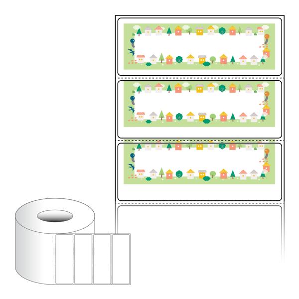 출력용 롤타입 스티커 디자인 라벨지, 규격코드: RL10035, 디자인코드: DA1644(행복한 마을의 이야기), 100 x 35 (mm) , 지관: 75mm