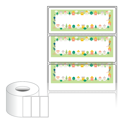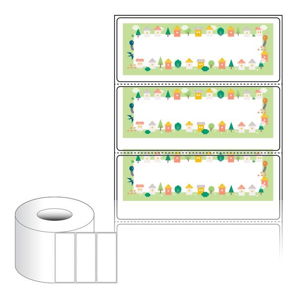 출력용 롤타입 스티커 디자인 라벨지, 규격코드: RL10039, 디자인코드: DA1644(행복한 마을의 이야기), 100 x 39.333 (mm) , 지관: 75mm