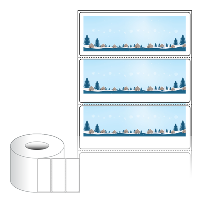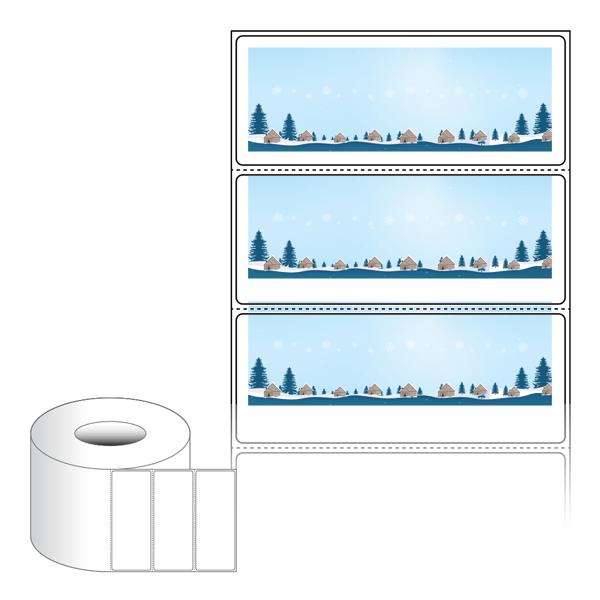 출력용 롤타입 스티커 디자인 라벨지, 규격코드: RL10039, 디자인코드: DA1718(눈내리는 고요한 숲의 마을), 100 x 39.333 (mm) , 지관: 75mm