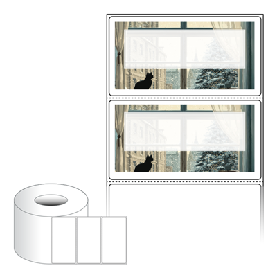 출력용 롤타입 스티커 디자인 라벨지, 규격코드: RL10052, 디자인코드: DA1494(오후엔 눈 그리고, 고양이), 100 x 52.033 (mm) , 지관: 75mm