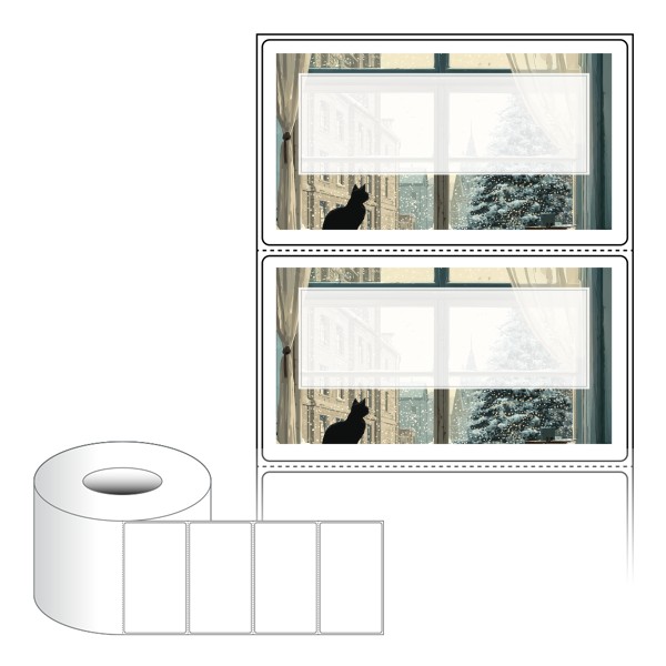 출력용 롤타입 스티커 디자인 라벨지, 규격코드: RL10056, 디자인코드: DA1494(오후엔 눈 그리고, 고양이), 100 x 56.267 (mm) , 지관: 75mm
