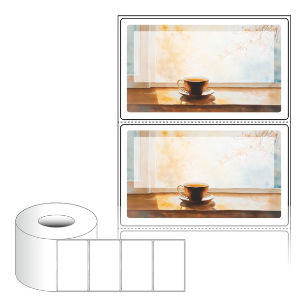 출력용 롤타입 스티커 디자인 라벨지, 규격코드: RL10061, 디자인코드: DA1425(가을날의 카페 창가에서), 100 x 60.5 (mm) , 지관: 75mm