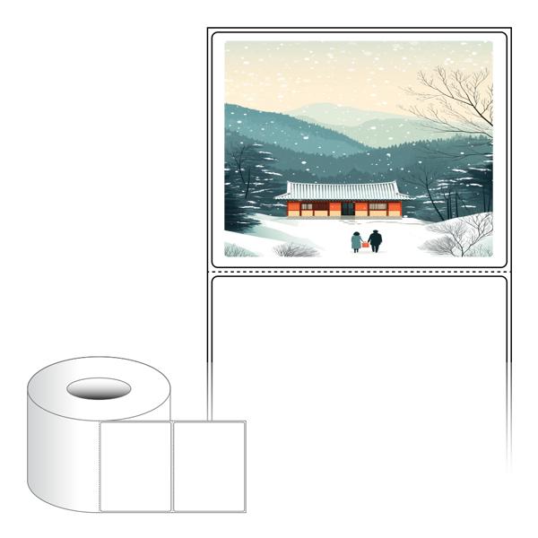 출력용 롤타입 스티커 디자인 라벨지, 규격코드: RL10080, 디자인코드: DA1577(귀향, 눈내리는 설날), 100 x 79.55 (mm) , 지관: 75mm