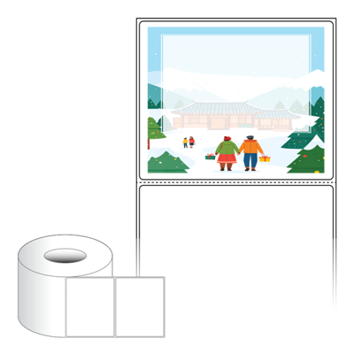 출력용 롤타입 스티커 디자인 라벨지, 규격코드: RL10082, 디자인코드: DA1569(설레는 설날의 아침), 100 x 81.667 (mm) , 지관: 75mm