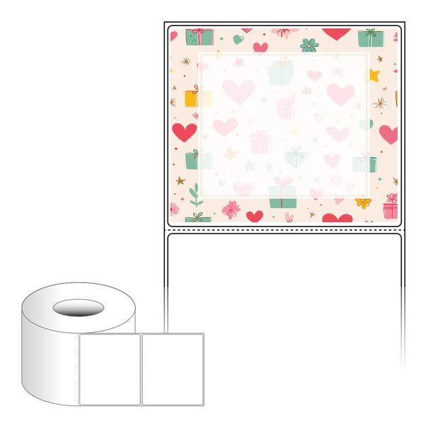 출력용 롤타입 스티커 디자인 라벨지, 규격코드: RL10086, 디자인코드: DA1393(선물 하트 포장지), 100 x 85.9 (mm) , 지관: 75mm