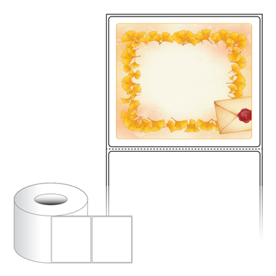 출력용 롤타입 스티커 디자인 라벨지, 규격코드: RL10086, 디자인코드: DA1426(은행잎 편지), 100 x 85.9 (mm) , 지관: 75mm