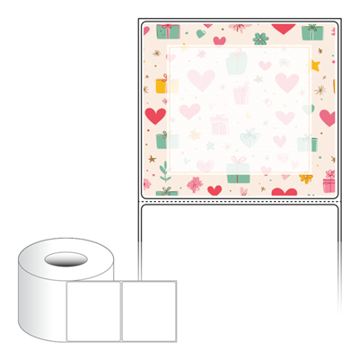 출력용 롤타입 스티커 디자인 라벨지, 규격코드: RL10090, 디자인코드: DA1393(선물 하트 포장지), 100 x 90.133 (mm) , 지관: 75mm