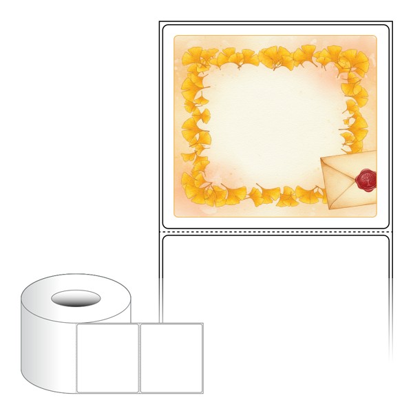 출력용 롤타입 스티커 디자인 라벨지, 규격코드: RL10090, 디자인코드: DA1426(은행잎 편지), 100 x 90.133 (mm) , 지관: 75mm